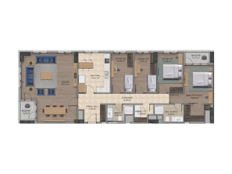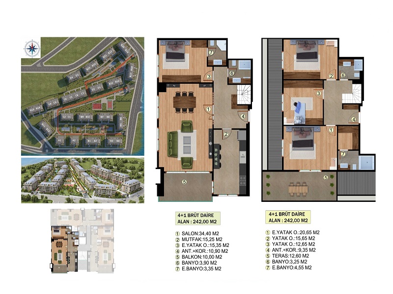 - أنماط الشقق :( 2+1 ) + ( 3+1 ) + ( 4+1 ) إضافة الى الشقق المزدوجة .