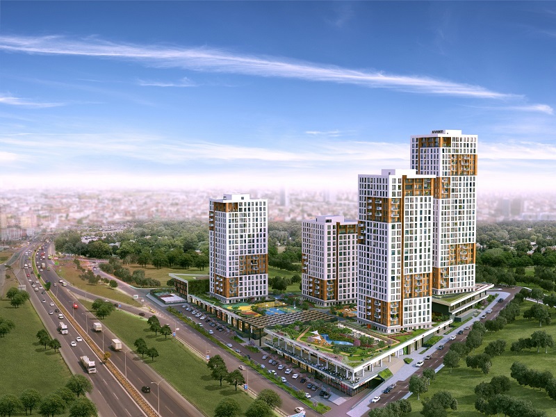- يتألف من 4 أبنية تضم 609 شقة سكنية بأنماط متنوعة و60 وحدة تجارية.