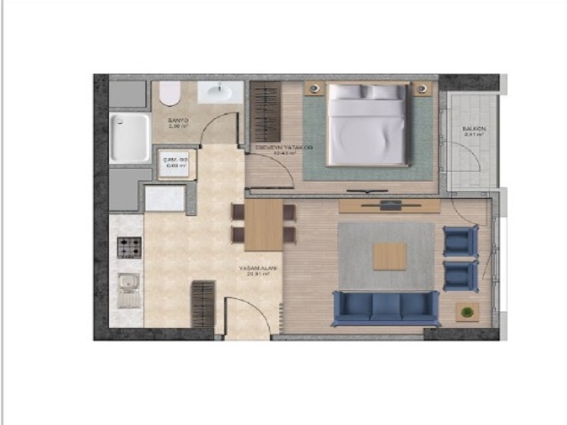 - أنماط الشقق : لدينا خمسة أنماط للشقق : ( 1+1 )– ( 2+1 ) – ( 3+1 ) – ( 4+1 ) – PENTH HOUSE .