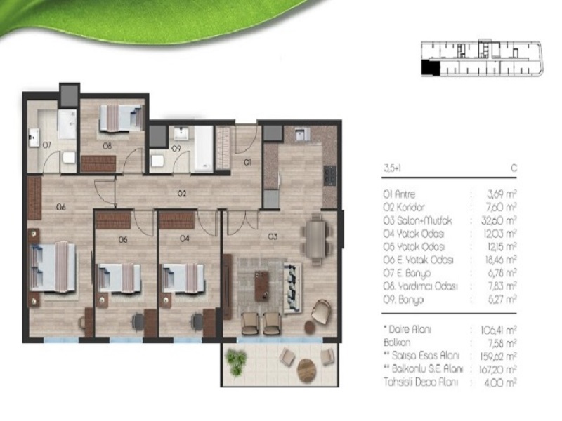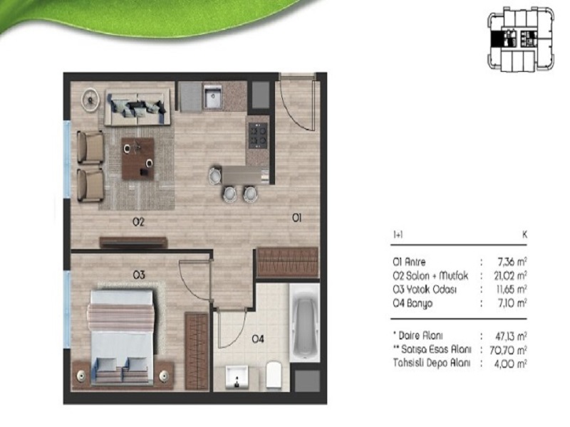 - أنماط الشقق : لدينا ستة أنماط للشقق : ( 1+1 )– ( غرفة صغيرة+1+1 ) – ( 1+2 ) – ( 1+3 ) – ( غرفة صغيرة+1+3 ) – ( غرفة صغيرة+1+4 ).