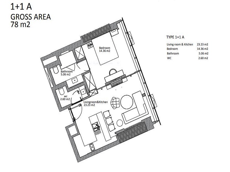 - ضمان تأجير للشقة الغرفة والصالة مساحة 78 متر مربع مدة 5 سنوات بمبلغ 3000TL شهرياً.