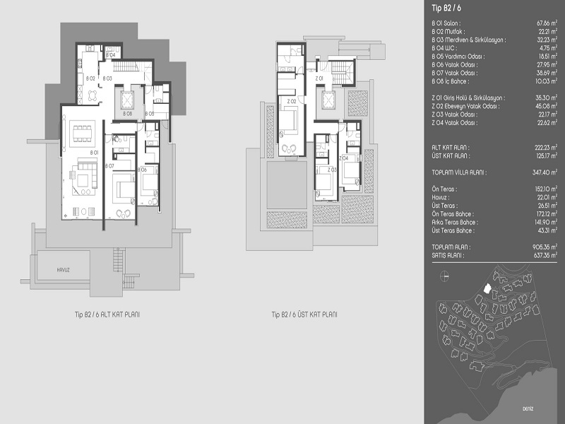 مساحات الفلل : تتراوح المساحة من 382.58 متر مربع ولغاية 1707.35 متر مربع.