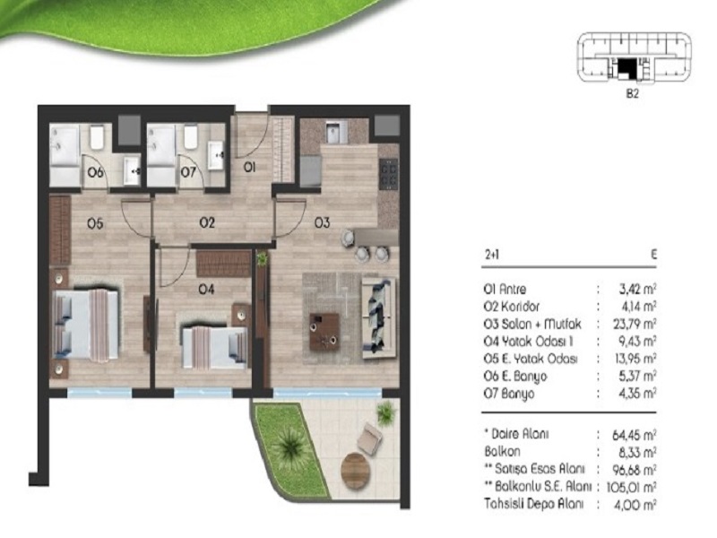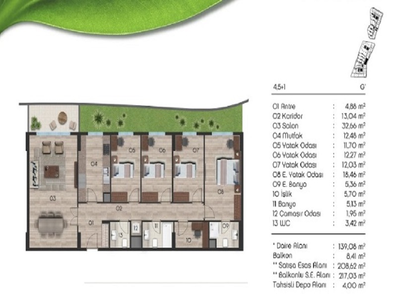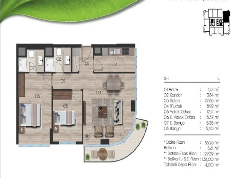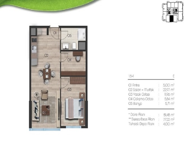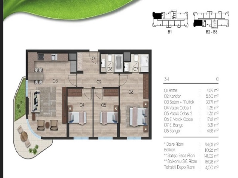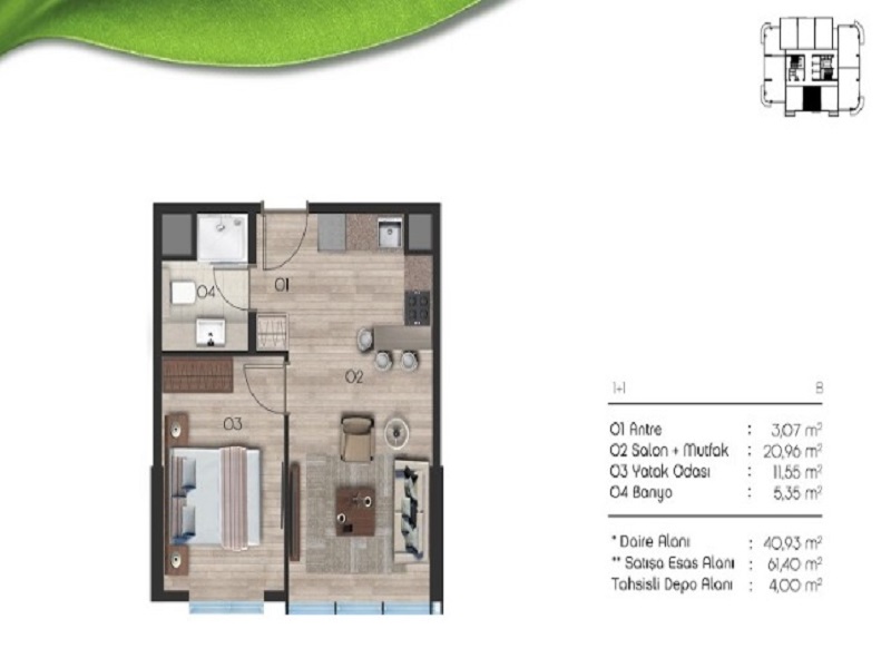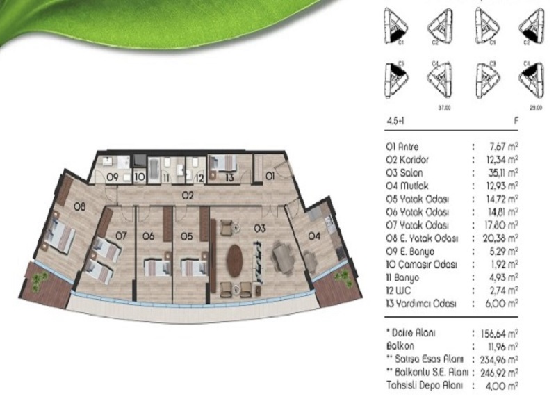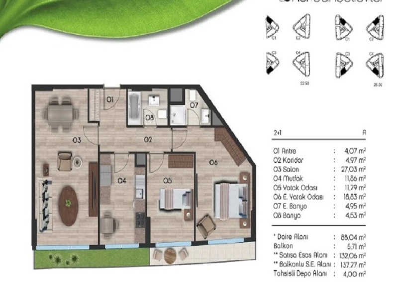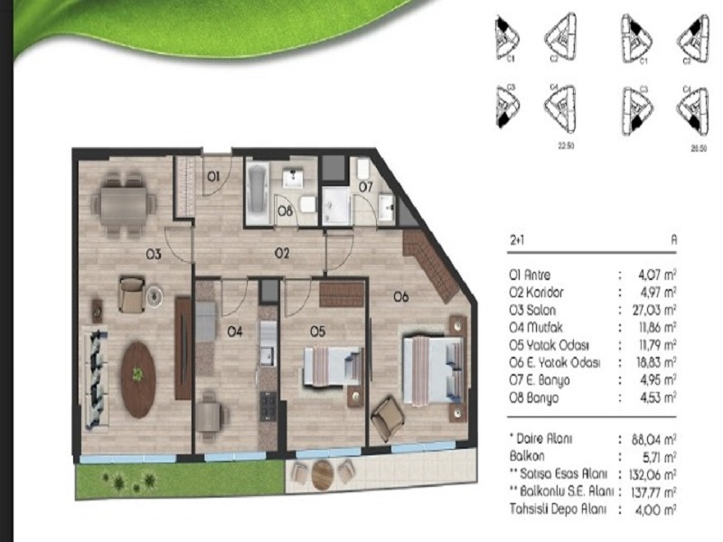 - أنماط الشقق : لدينا ستة أنماط للشقق : ( 1+1 )– ( غرفة صغيرة+1+1 ) – ( 1+2 ) – ( 1+3 ) – ( غرفة صغيرة+1+3 ) – ( غرفة صغيرة+1+4 ).