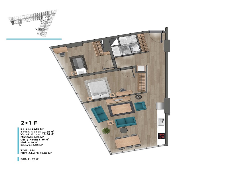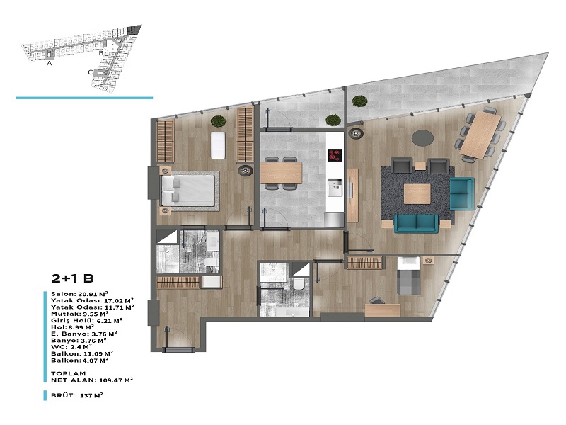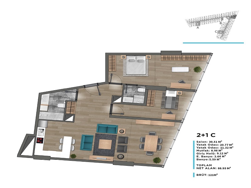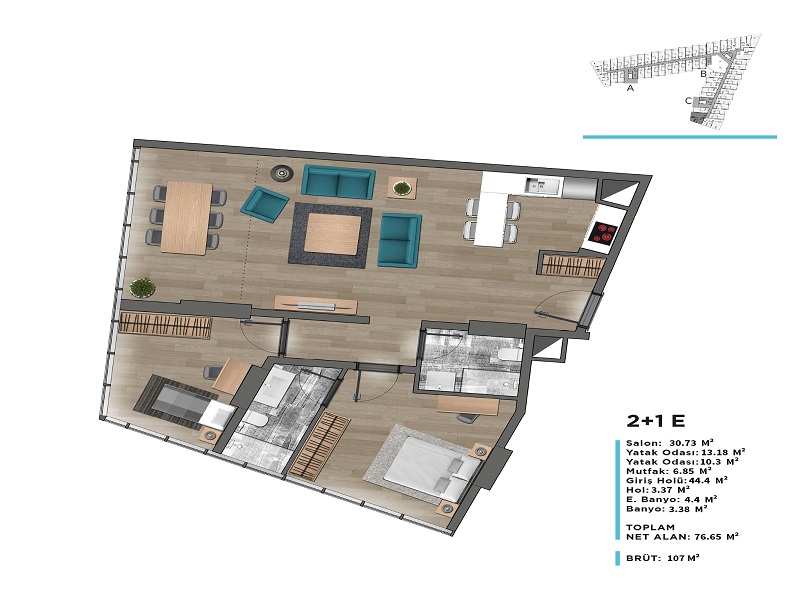 يشغل المشروع موقعاً استراتيجياً مميزاً حيث يبعد 5 دقائق عن جامعة GELİŞİM، و4دقائق عن مشفى MEDİLİFE و 5 دقائق عن جامعة BEYKENT.