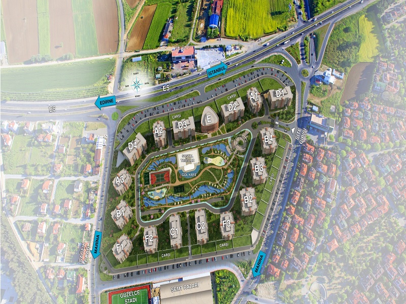 يشغل المشروع موقعاً استراتيجياً هاماً حيث يقع على مقربة من الطريق السريع E5