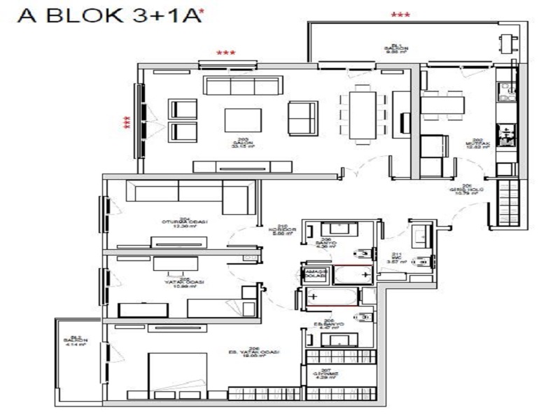 أنماط الشقق : لدينا ثلاث أنماط للشقق: ( 1+2 ) - ( 1+3 ) - ( 1+4 ) .