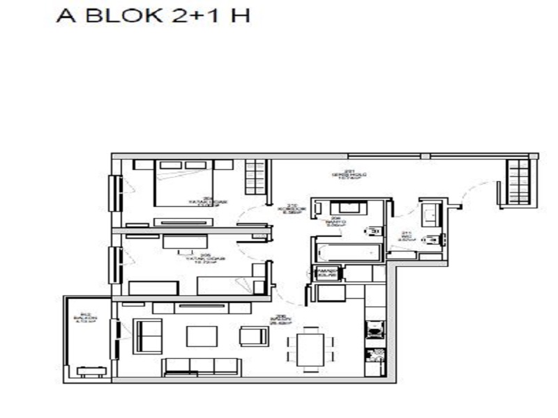 يتألف المشروع من 17 كتلة تضم 709 شقة و 111 محلاً تجارياً تحيط بالكتل